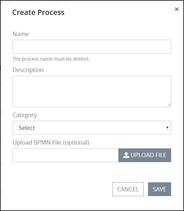 - Optionally, upload a third-party BPMN 2.0 compliant BPMN file from which to use its Process model in ProcessMaker. Do not use this function to import a ProcessMaker version 4 .json file.